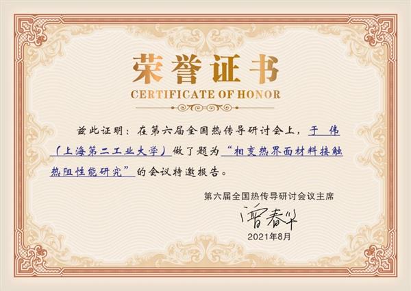 2021年8月6~10日,第六屆全國熱傳導研討會在“春城”昆明隆重召開,由于疫情影響,本次研討會轉為線上舉行。上海第二工業大學于偉教授、汪玲玲副教授和李一凡博士出席了本次大會。