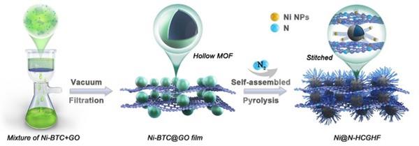 發展可再生、安全、清潔、可持續的新能源及其所需的能源存儲與轉換技術是當下全球性的熱門課題,其中,超級電容器、鋰離子電池、金屬空氣電池、氫氧燃料電池、電解水等作為典型的能源存儲與轉換技術具有極大的應用潛力和研究價值。其反應過程中的關鍵電極反應如氧氣還原反應(ORR)、析氧反應(OER)、析氫反應(HER)等,均涉及到反應中間體在電極上的吸附和離解的復雜反應過程,因此需要催化劑來加快反應的進行。相較于傳統的粉末催化劑,自支撐碳基膜材料不需要繁瑣的電極制備過程,不僅具備優異的導電性,可以為電子轉移提供通道,其較高的比表面積也可以暴露出更多的催化活性位點,提高膜材料的催化性能。該研究選用中空球形金屬有機框架化合物(MOF)作為“間隔物”和自犧牲模板,利用MOF自生長的碳納米管“針線”,將二維石墨烯片層“縫合”起來,構建了一種柔性三維自支撐的多孔碳納米管石墨烯復合膜材料。得益于MOF中金屬及有機配體的可控性,可以在膜結構中引入均勻分布的金屬納米顆、少層氮摻雜石墨碳“鎧甲”結構。這種特殊的納米結構不僅可以提高膜材料的催化活性,還可以大大提高膜材料的穩定性。該方法具有很好的普適性,可用于多種納米結構的MOF及二維材料,可廣泛用于多種功能膜材料的合成與制備,具有廣闊的應用前景。