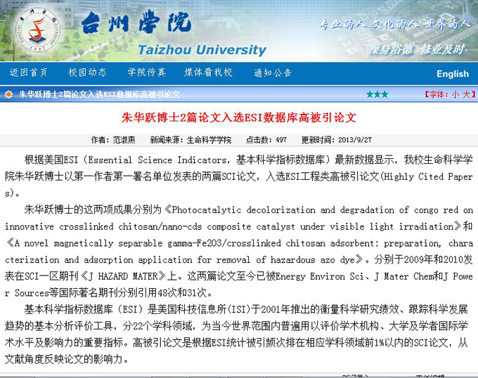 課題組2篇SCI論文入選國際ESI高被引論文
